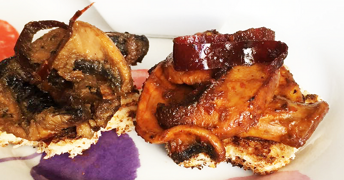 Pon los champiñones en una sartén caliente, coloca el concentrado de MOJO DE AJO MG y las rodajas de chile guajillo.