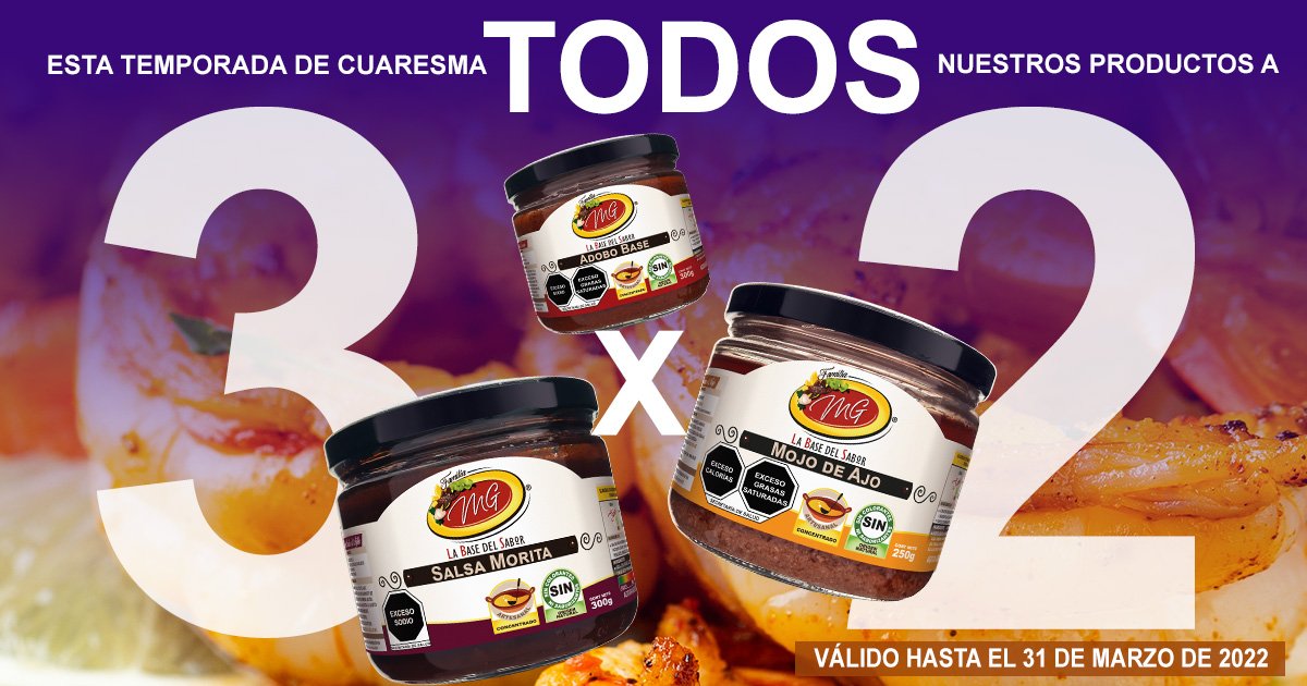 Es por este motivo que MG ALIMENTOS quiere apoyarte ofreciéndote TODOS NUESTROS PRODUCTOS AL 3 X 2. Compra 3 y solo pagas 2 hasta el 31 de Marzo de 2022.